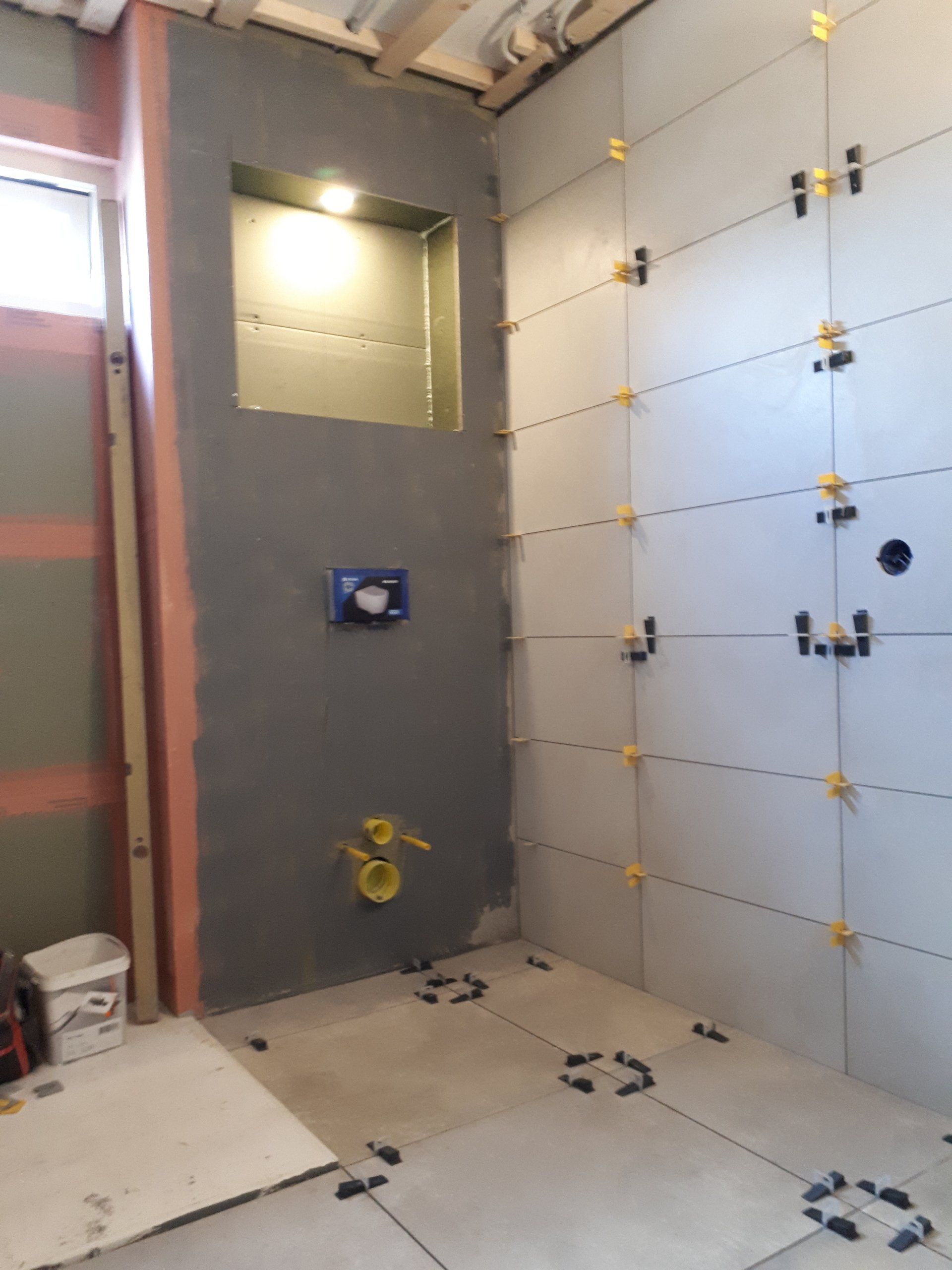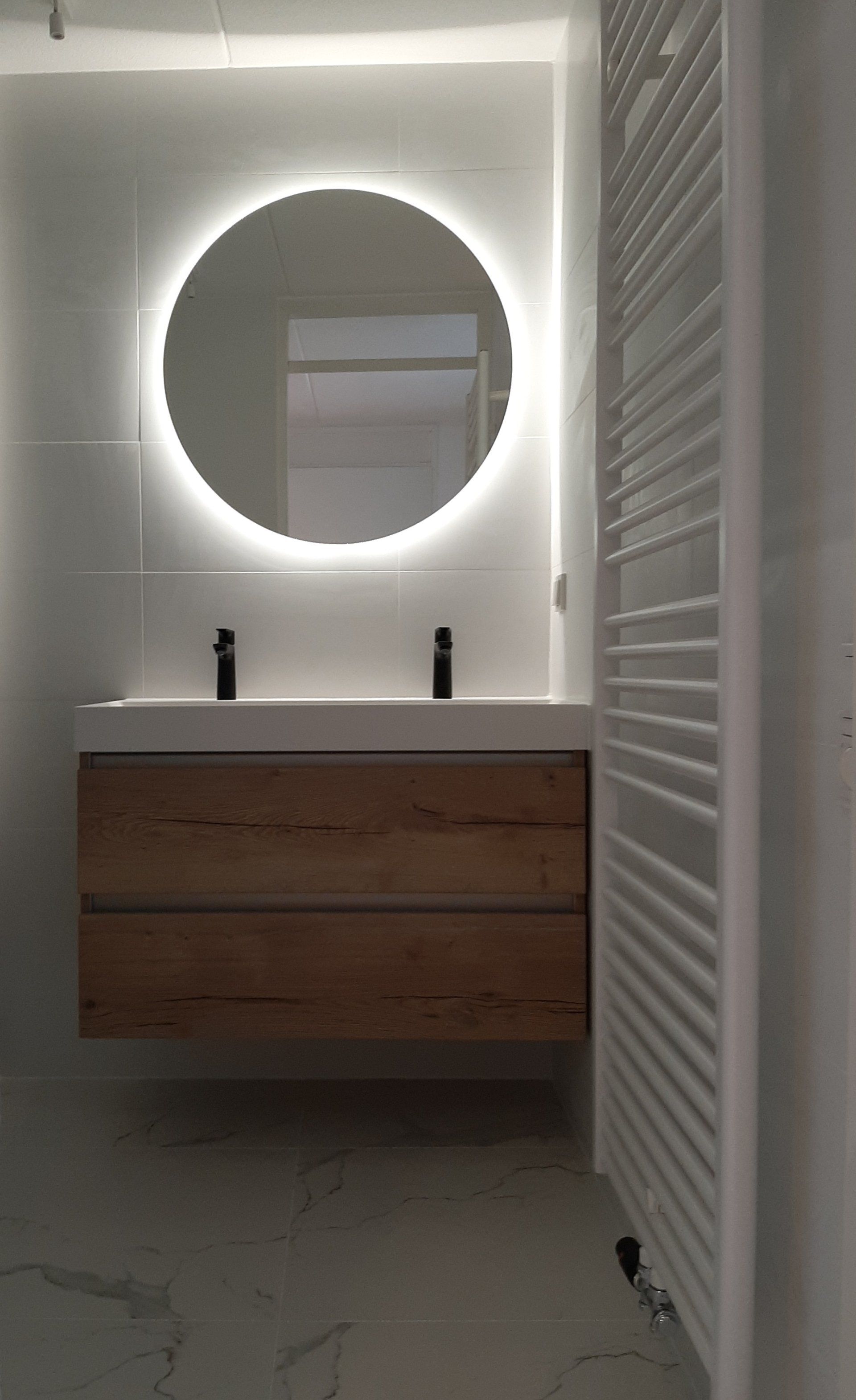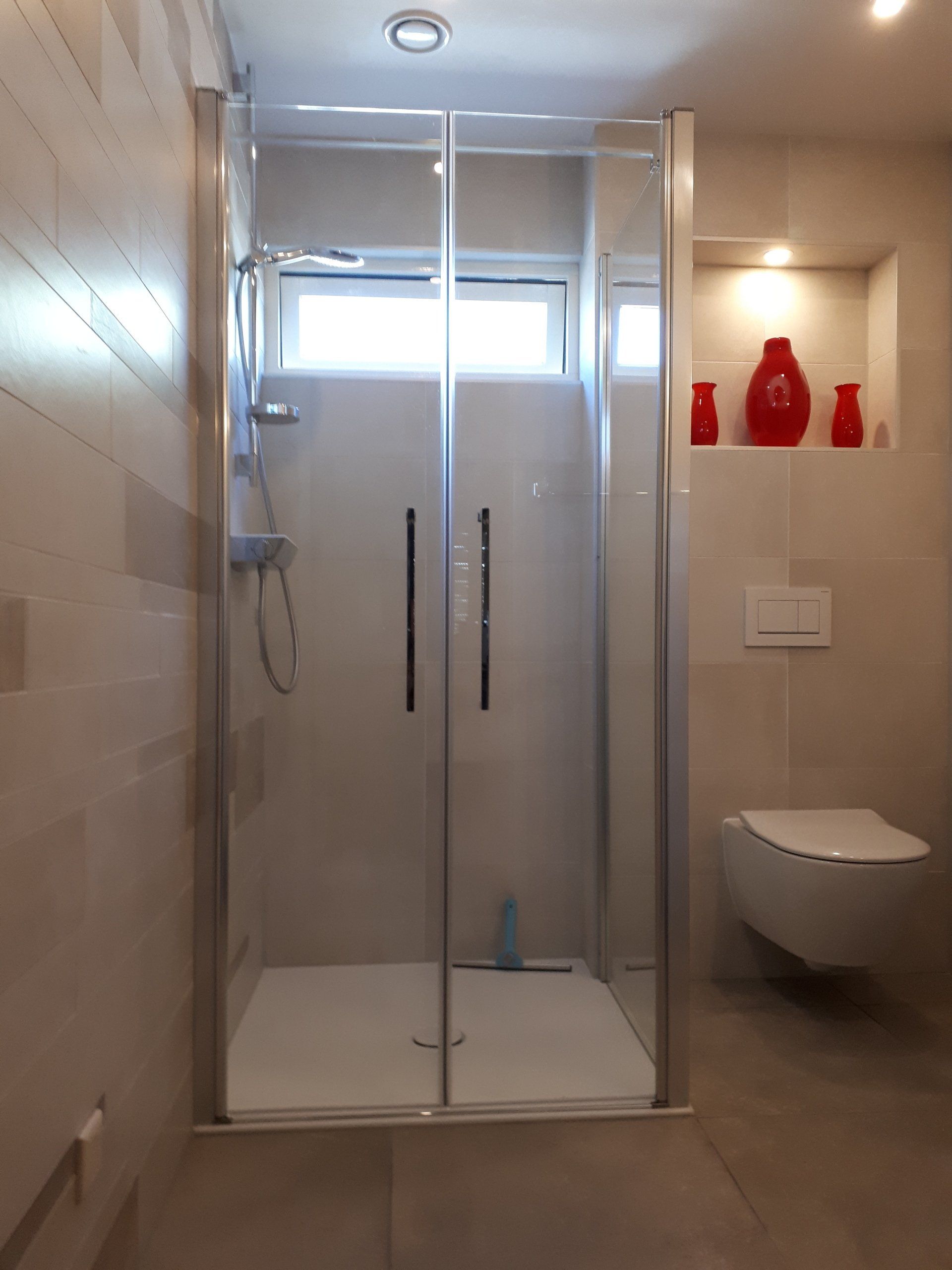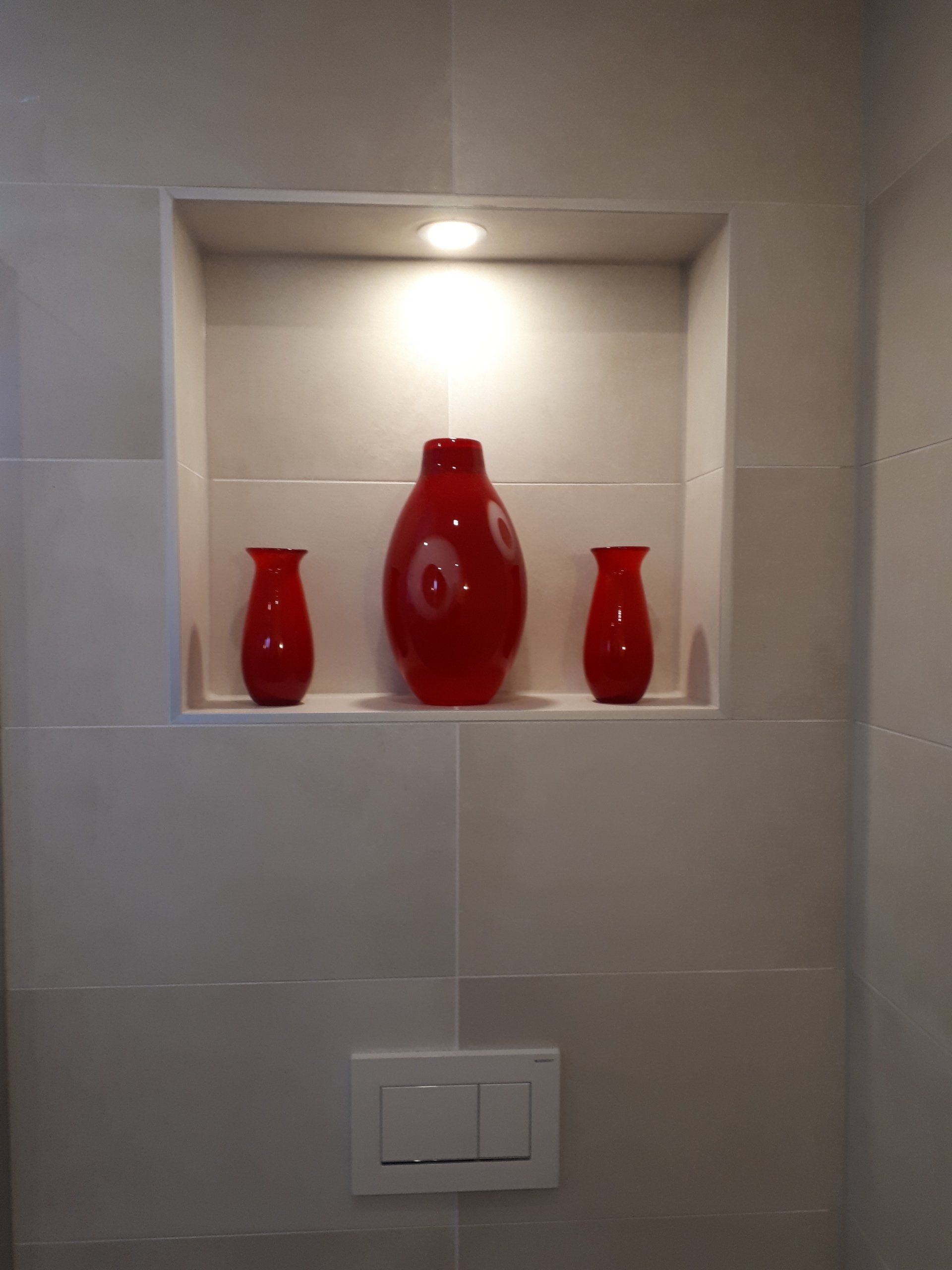 Volledige renovatie van badkamer. Aanbrengen van vloer- en wandtegels, afmonteren sanitair en totale afwerking.