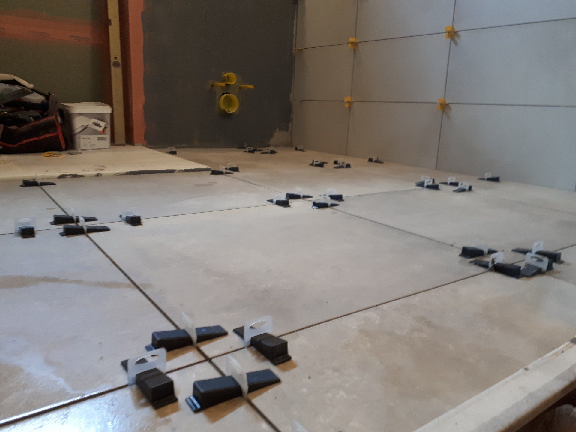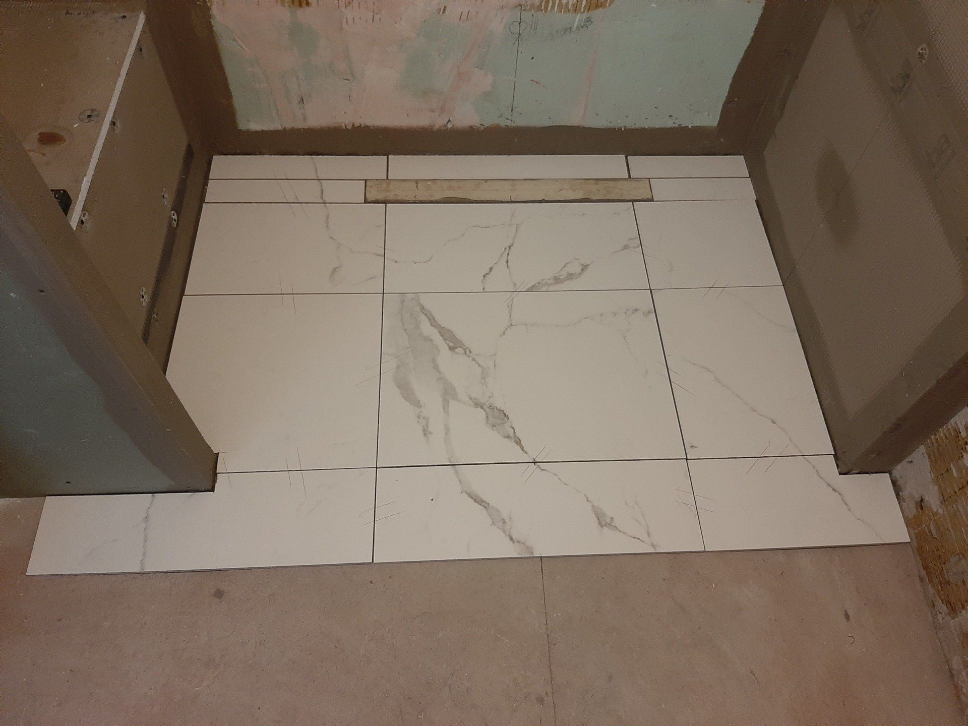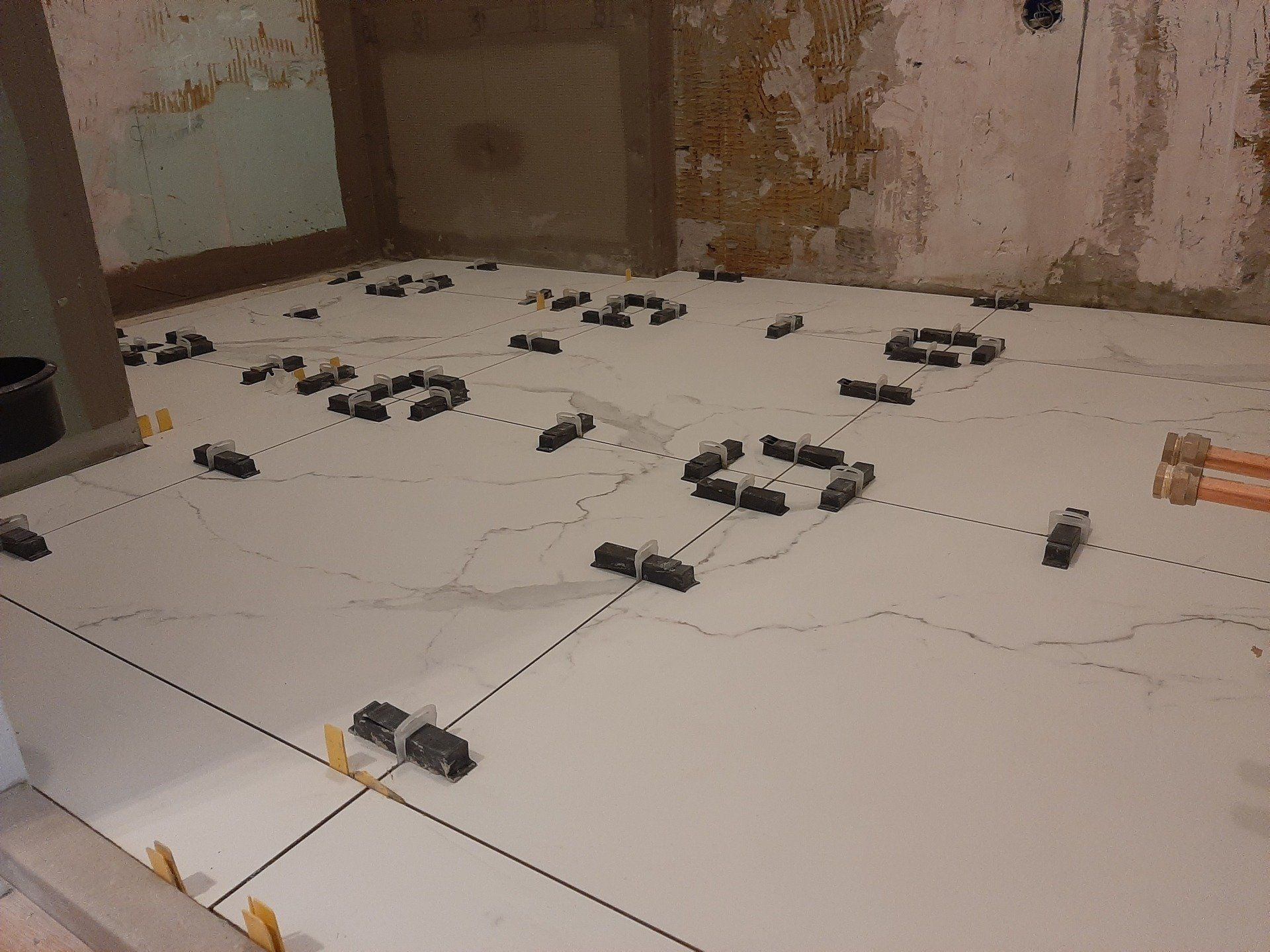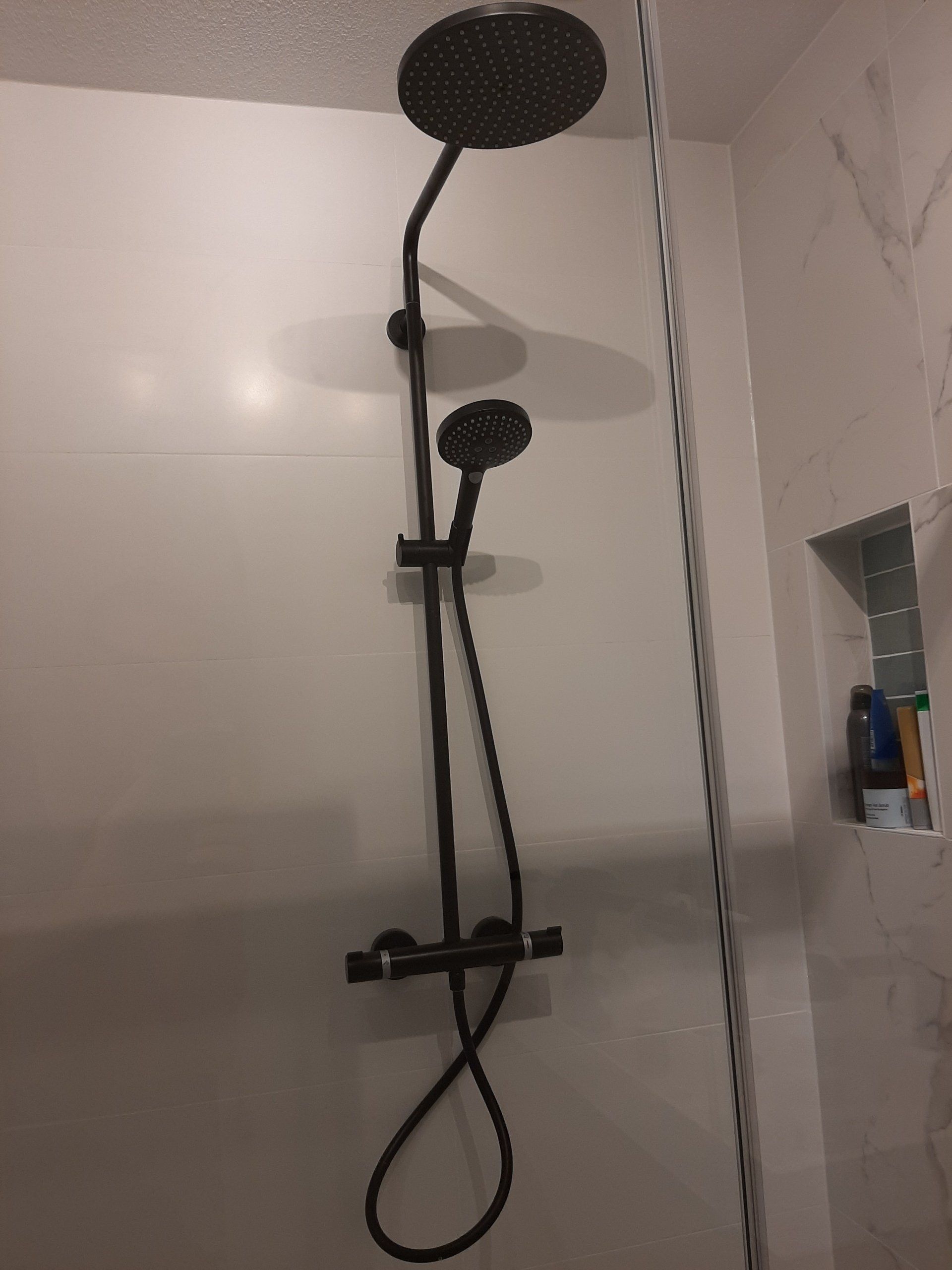 Volledige renovatie van badkamer. Aanbrengen van vloer- en wandtegels, afmonteren sanitair en totale afwerking.